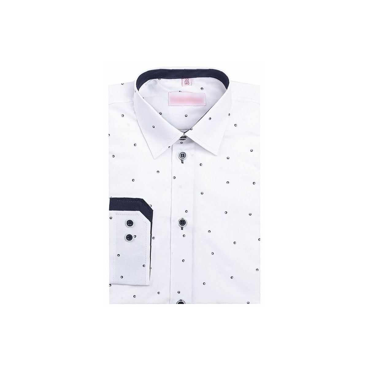 Trendová chlapčenská košeľa slim fit biela s drobným vzorom s granátovou podšívkou a dvojfarebnými gombíkmi