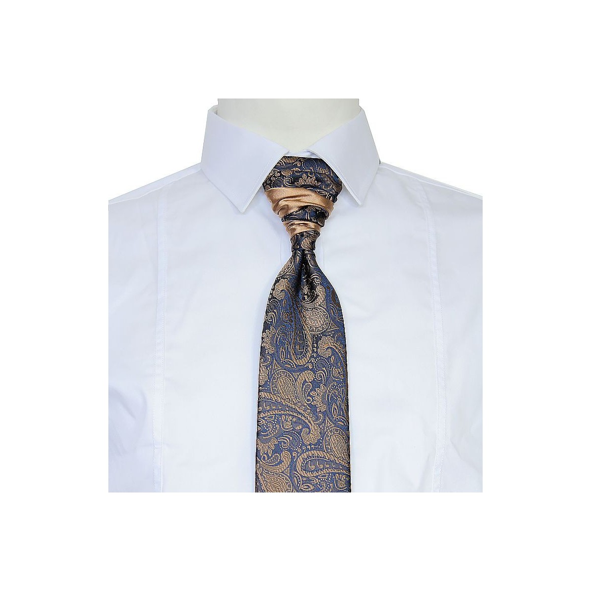 Francúzska kravata zlatohnedá paisley na tmavomodrom podklade exclusive