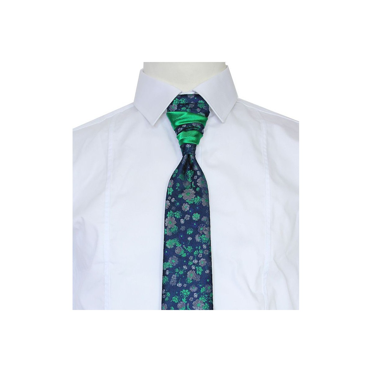 Francúzska kravata zelená kvetovaná na tmavomdorom podklade exclusive