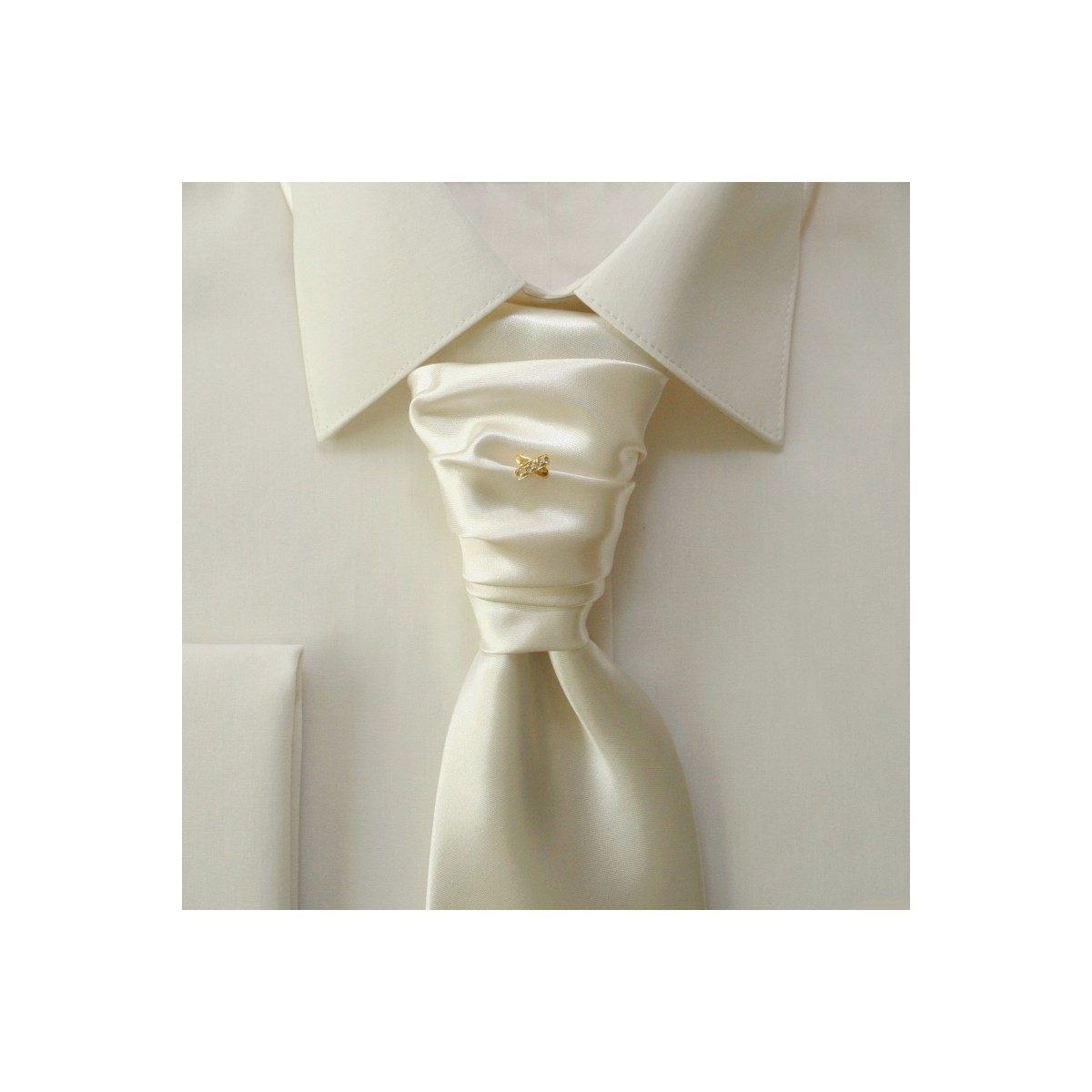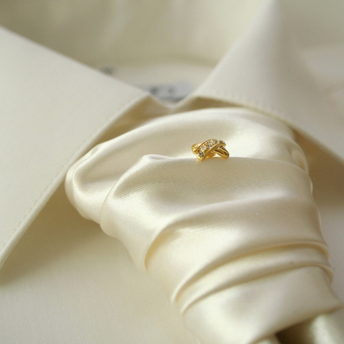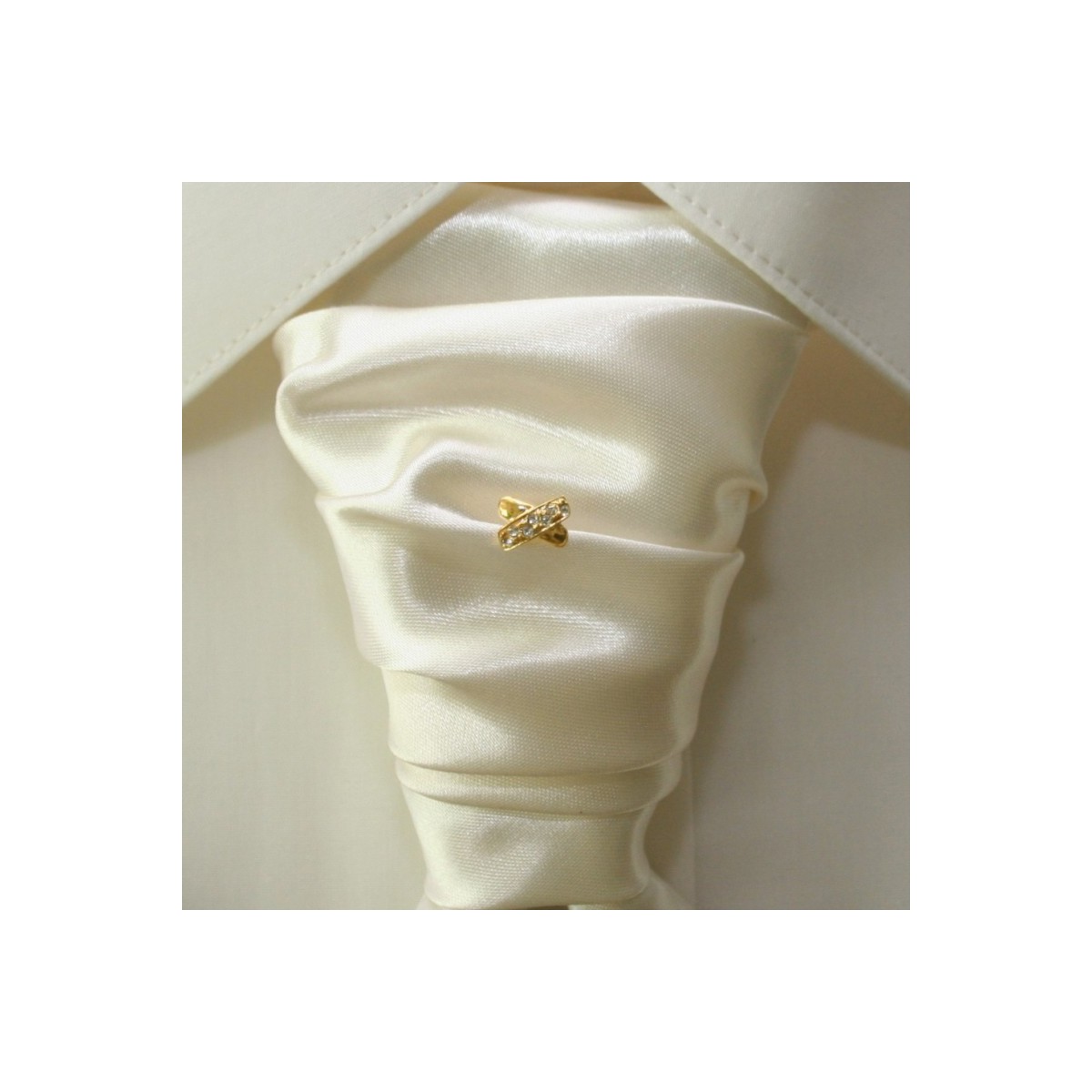 Ihlica do kravaty zlatá lesklá s drobnými zirkónmi na ramene prekríženia o šírke 9 mm
