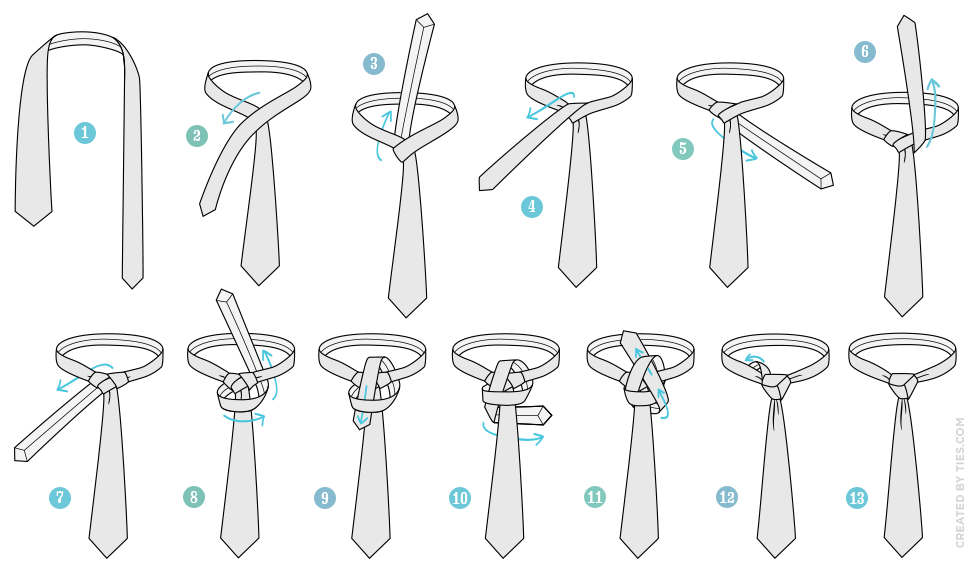 Tento spôsob viazania kravaty pristane každému, vinikne predovšetkým u mužov s dlhým krkom. Pri viazaní kravaty sa postavte pred zrkadlo a postupujte podľa nasledujúcich krokov: