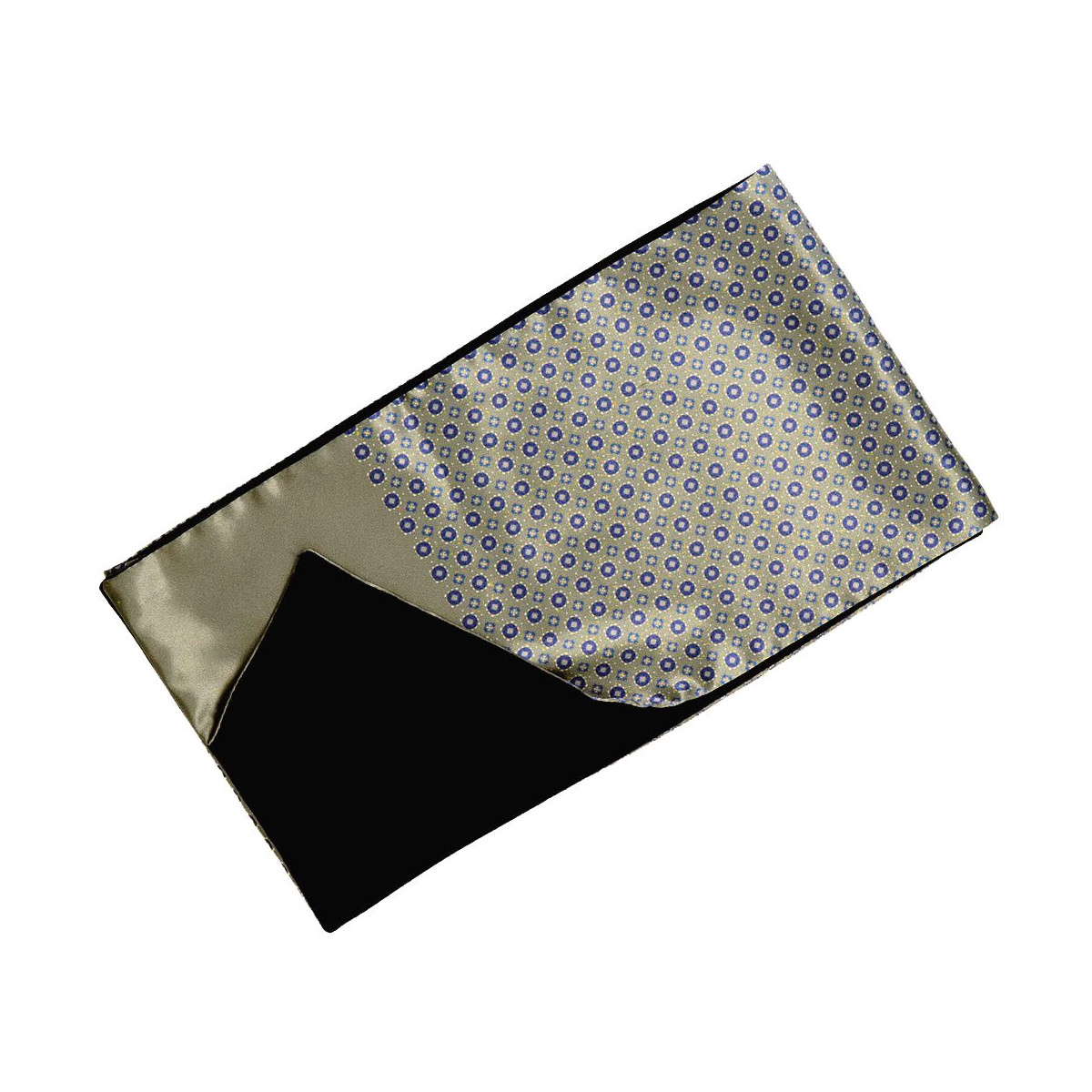 Elegantný pánsky šál zlatý fango s drobným modrým vzorom lesklý
