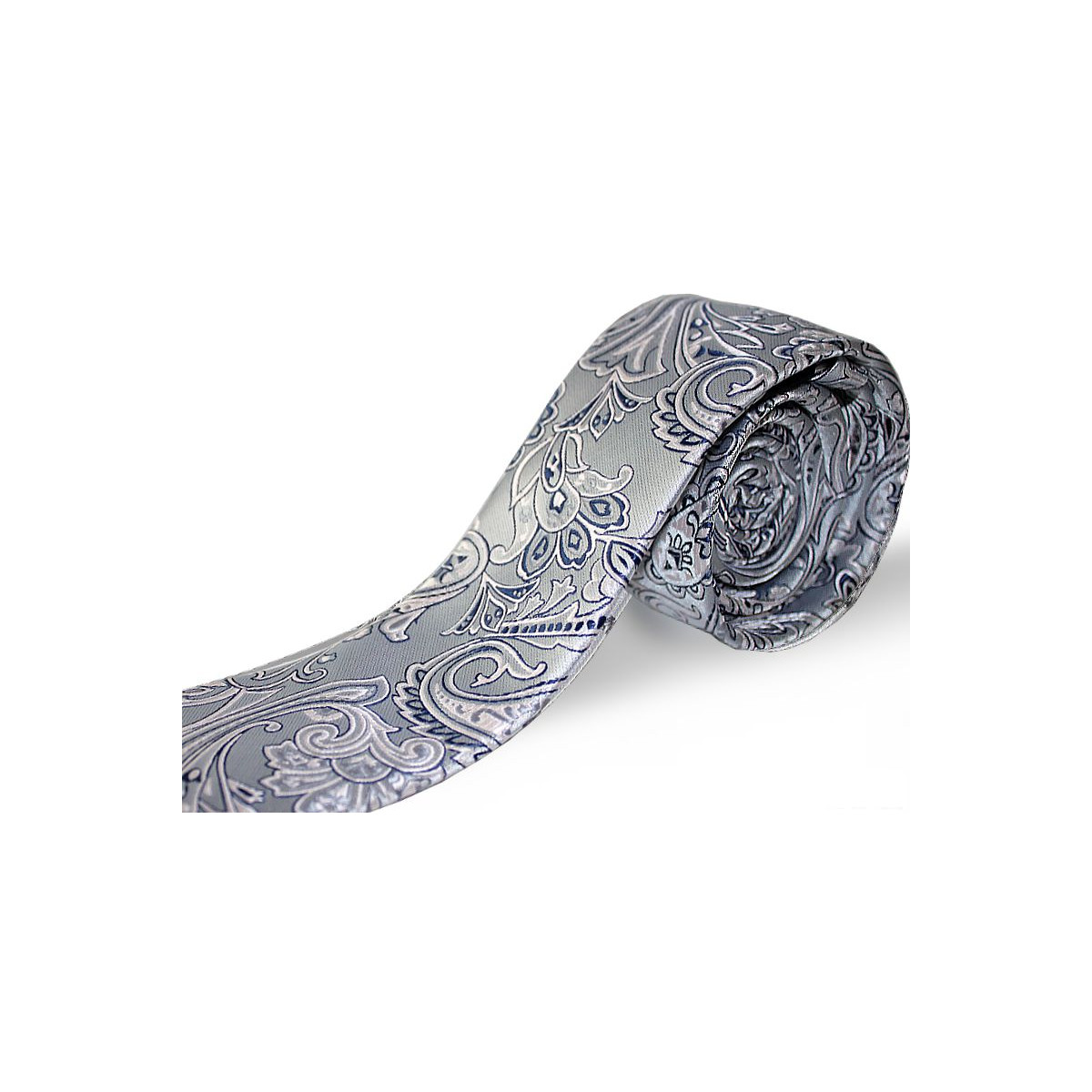 Exkluzívna kravata sivá s tmavomodrým vzorom paisley