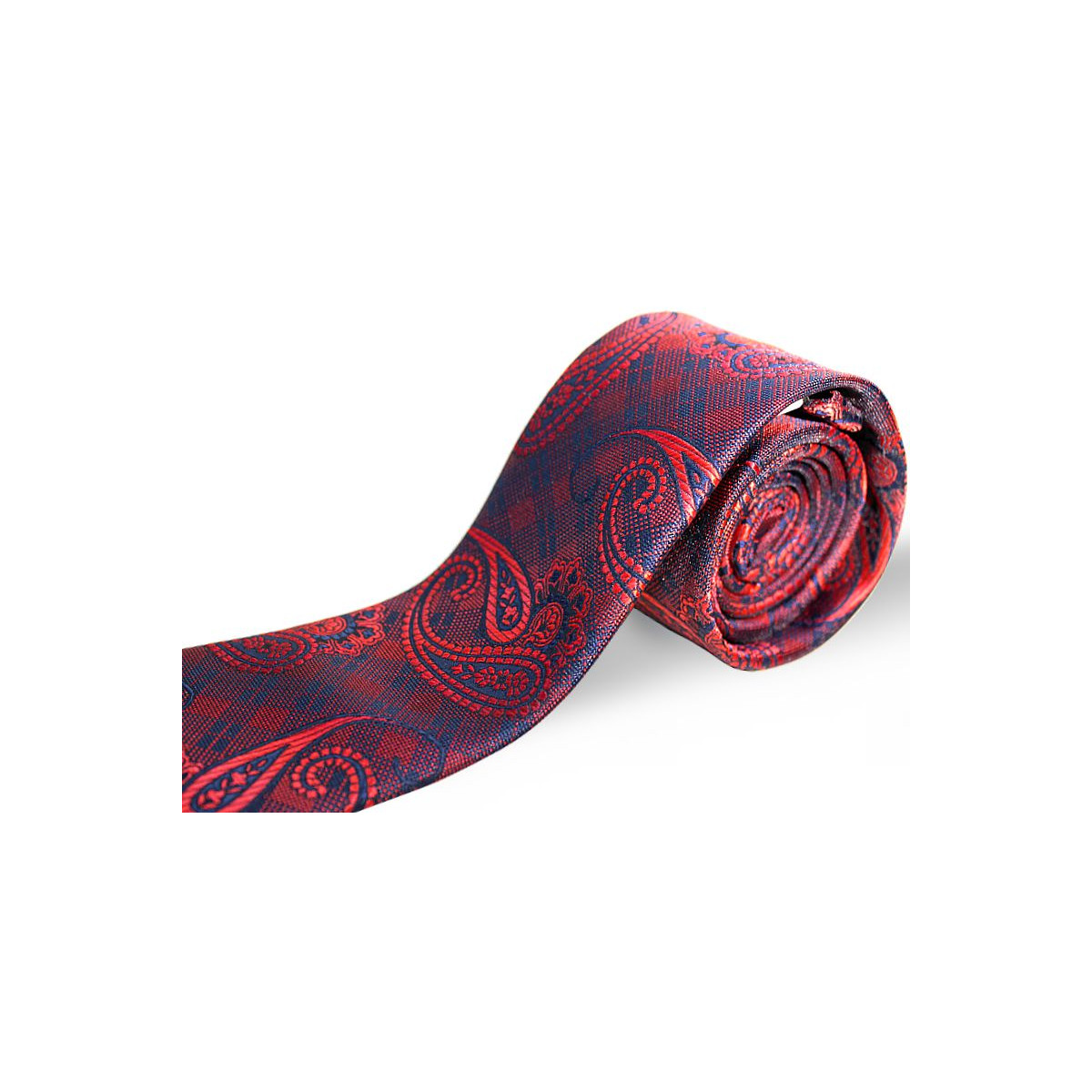 Exkluzívna korálová kravata so vzorom paisley na tmavomodrom podklade