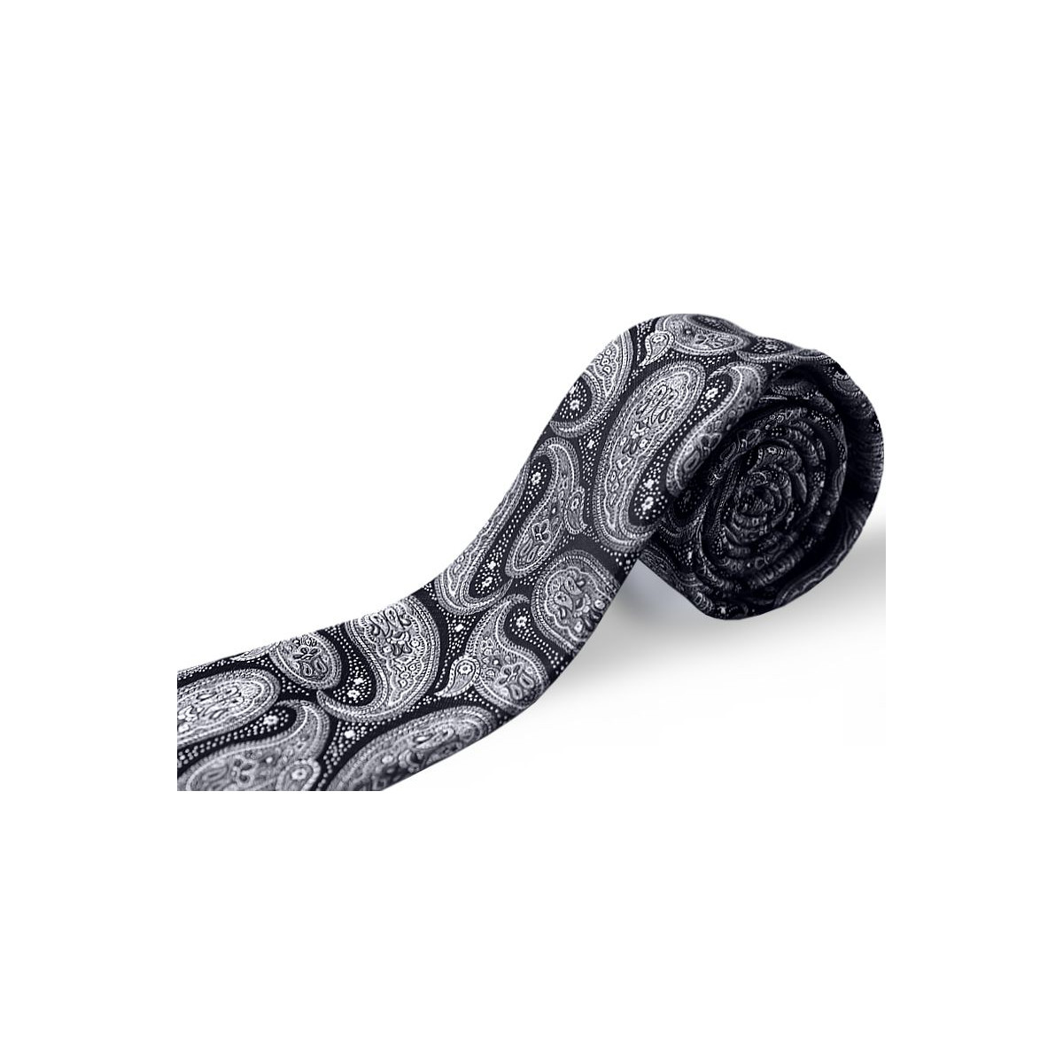 Čierna kravata s grafitovo-bielym vzorom paisley