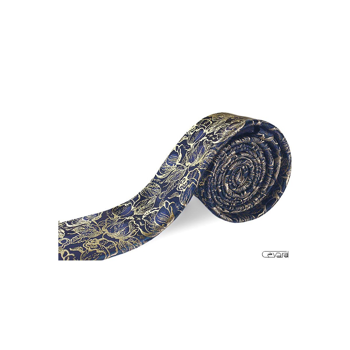 Zlatá kravata floral na tmavomodrom podklade slim