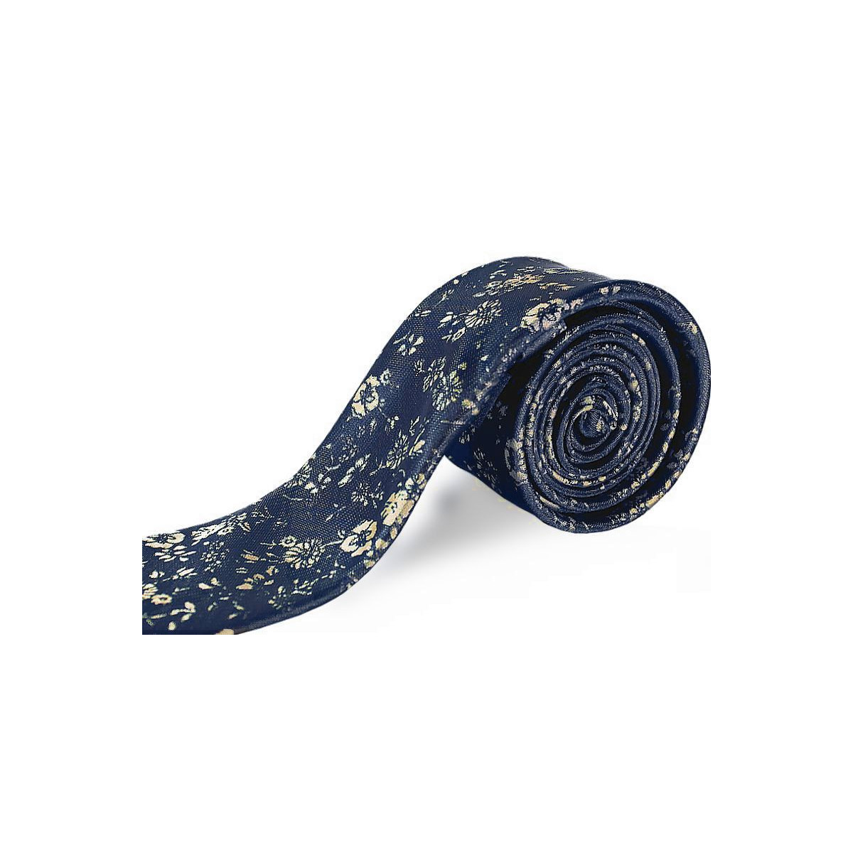 Zlatá kravata kvetovaná na tmavomodrom podklade slim
