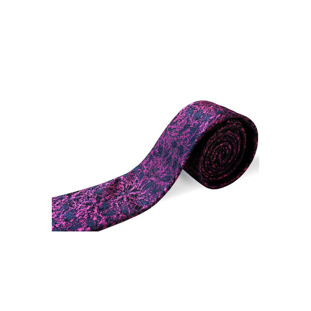 Cyklámenová kravata vzorovaná na tmavomodrom podklade slim