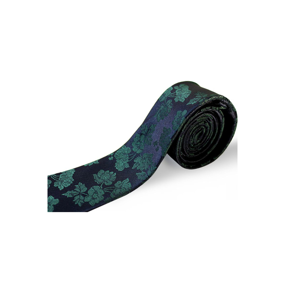 Tmavomodrá kravata s tmavozeleným kvetovým vzorom slim