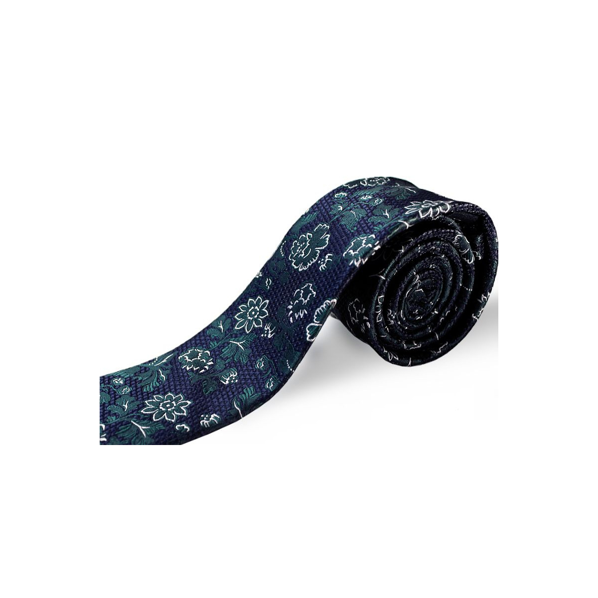 Tmavomodrá kravata s machovým kvetovým vzorom slim