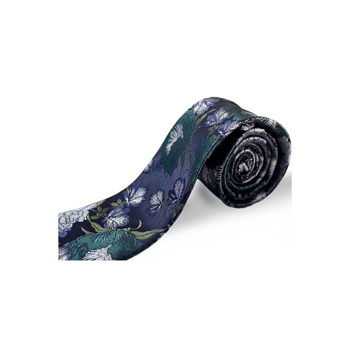 Tmavomodrá kravata so zeleným a bielym kvetovým vzorom