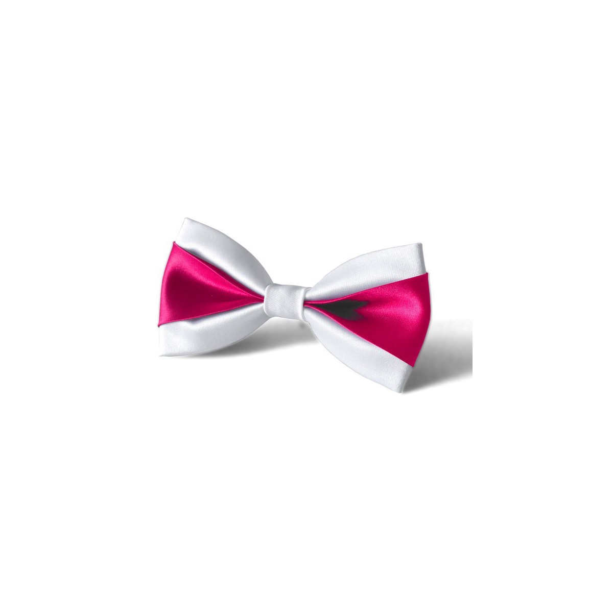 Exkluzívny spoločenský motýlik dizajn BWT bielo-cyklámenový s obojstrannou vreckovkou