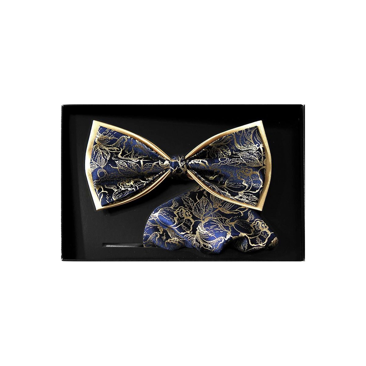 Zlatý motýlik vzor floral na tmavomodrom podklade s vreckovkou