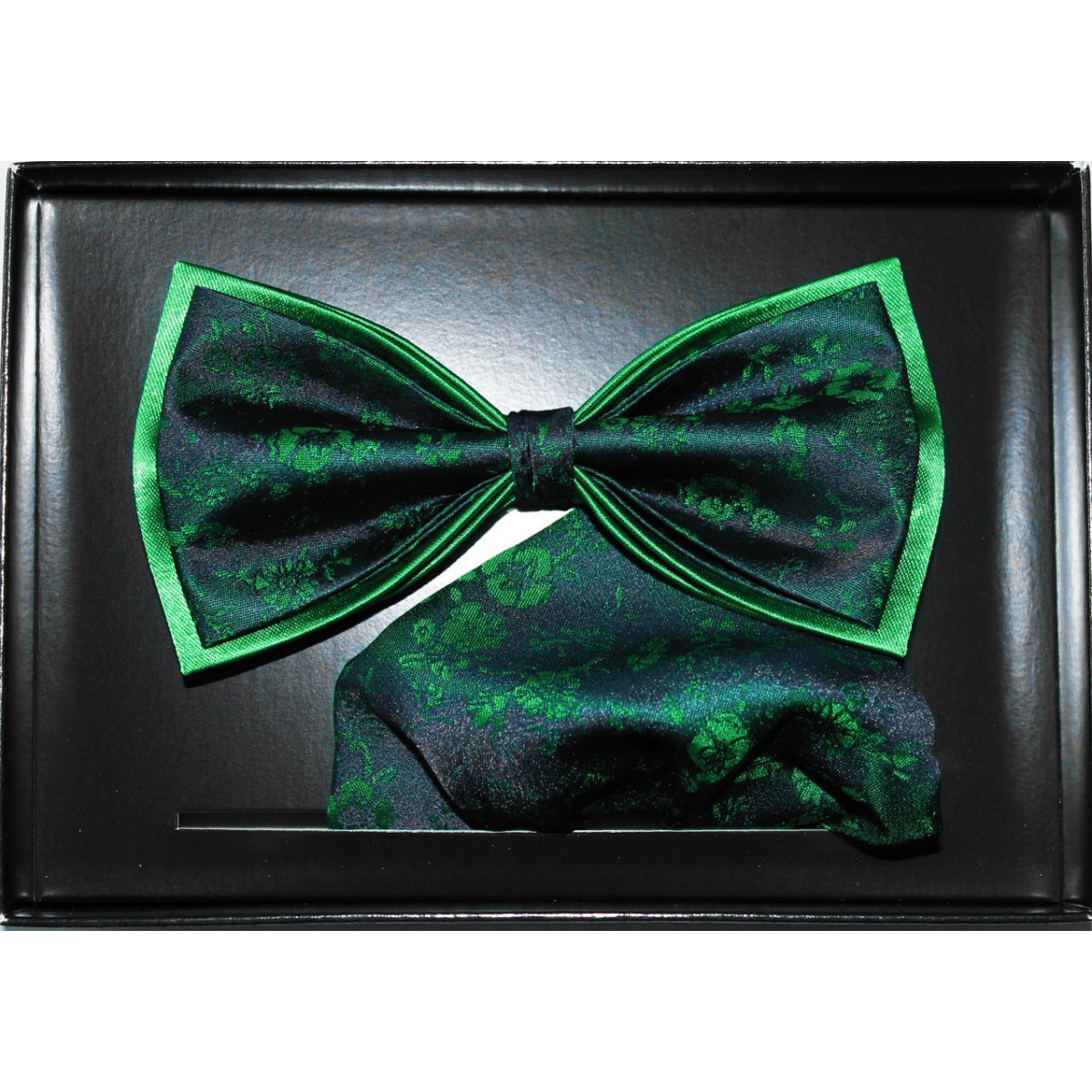 Zelený motýlik kvetovaný na tmavomodrom podklade dvojitý s vreckovkou