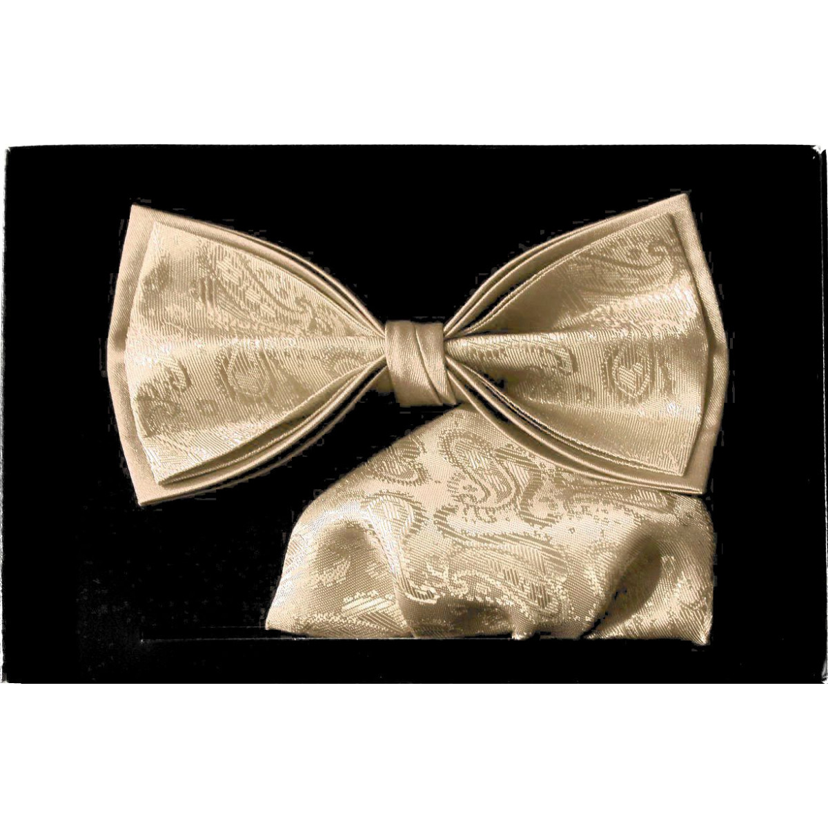 Zlatobéžový motýlik paisley dvojitý s vreckovkou