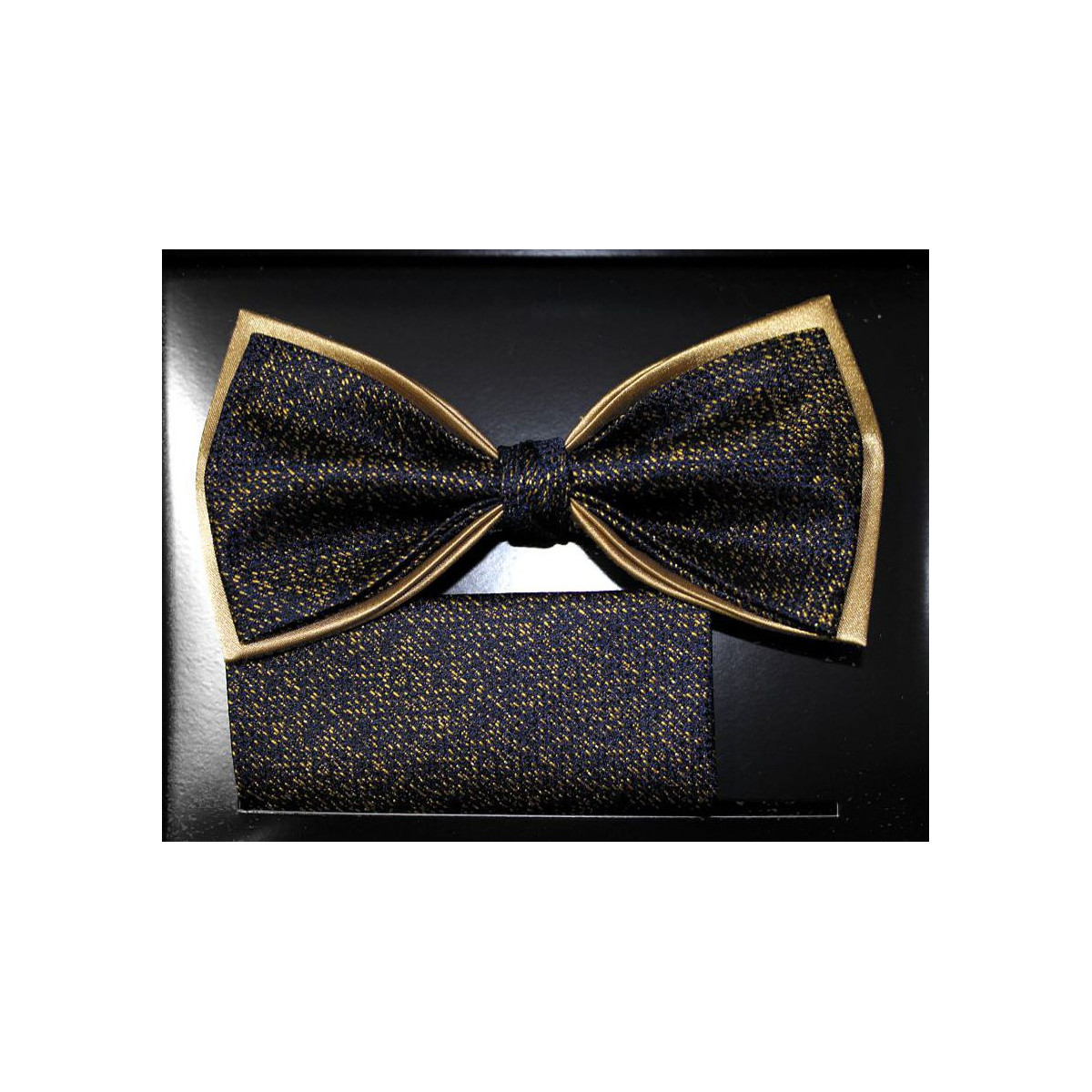 Zlatý motýlik drobný vzor na tmavomodrom podklade s vreckovkou
