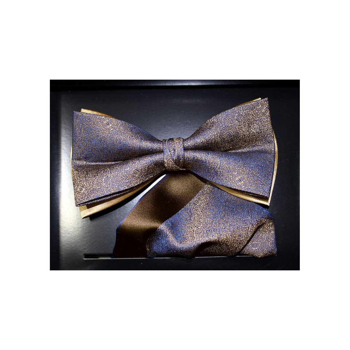 Zlato-modrý motýlik drobný vzor paisley s vreckovkou