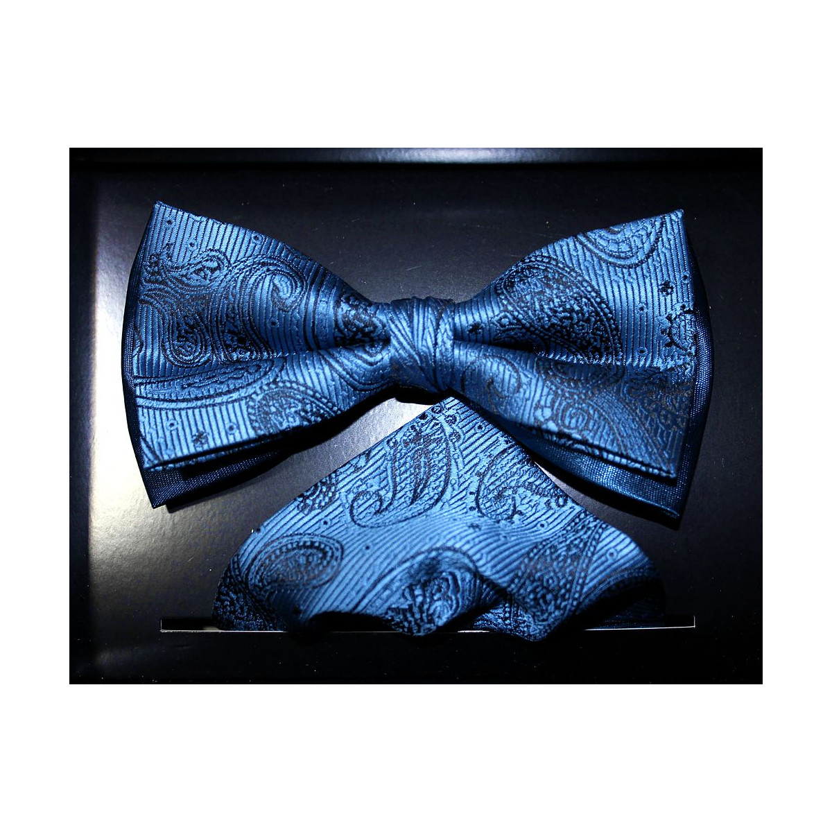 Motýlik jeansovo modrý paisley s vreckovkou
