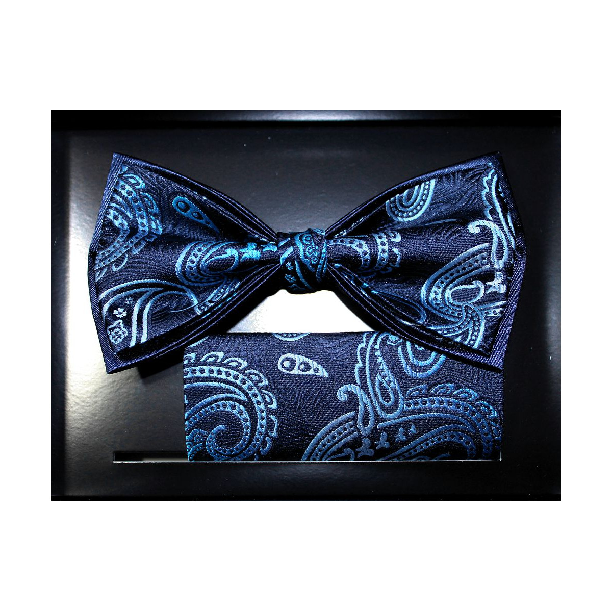 Tmavomodrý motýlik s tyrkysovým vzorom paisley s vreckovkou