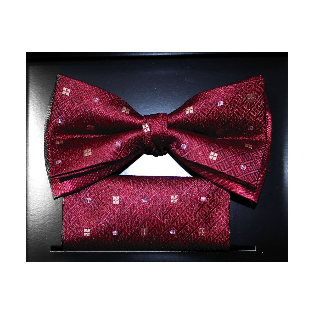 Vínovobordový motýlik so vzorom s vreckovkou
