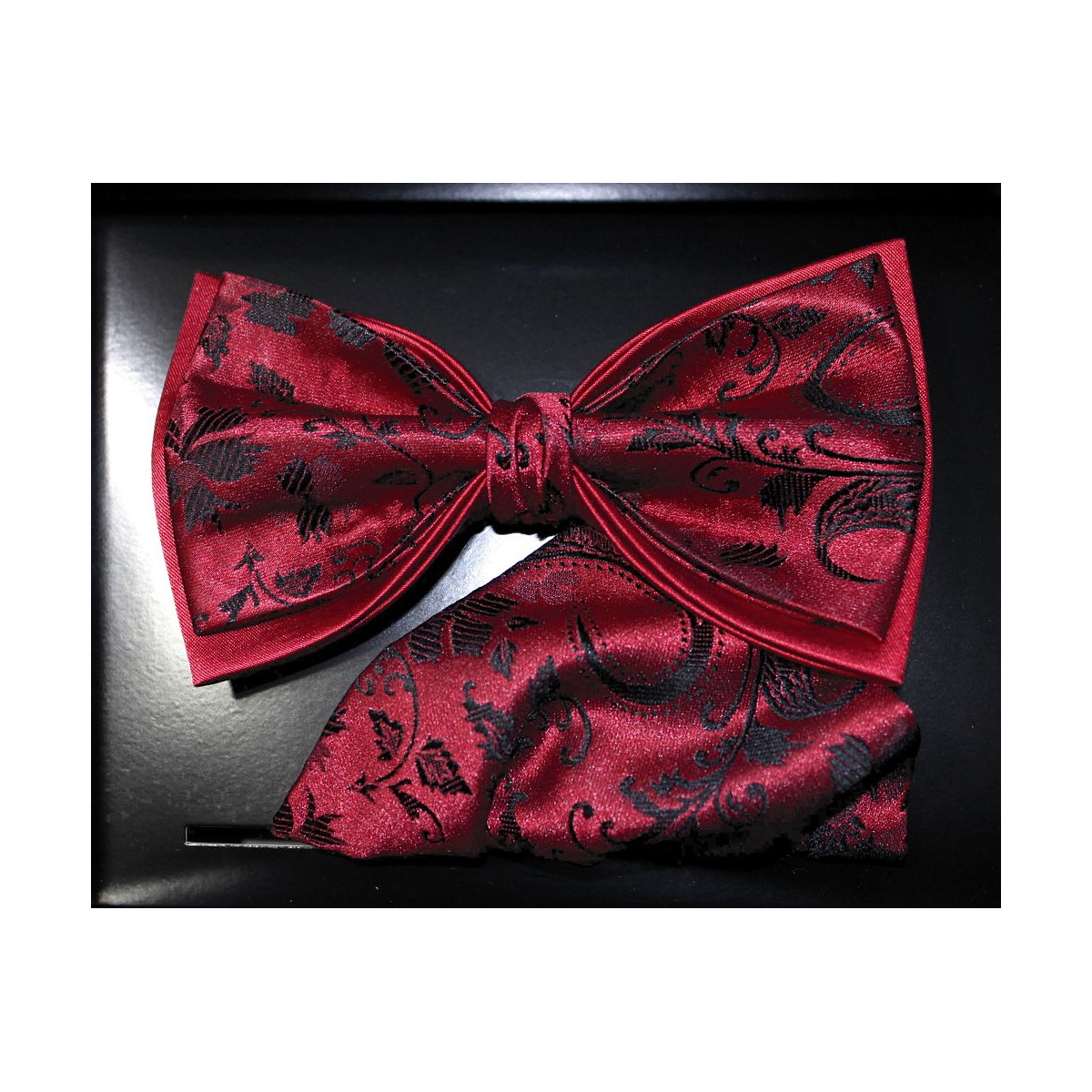 Vínovobordový motýlik s čiernym rastlinným motívom s vreckovkou