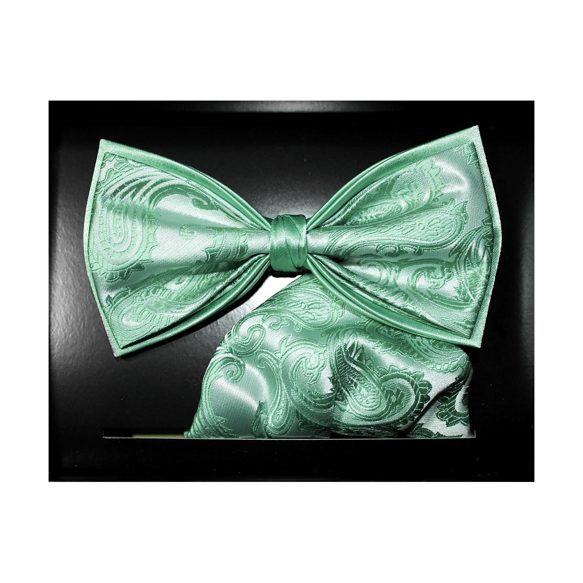 Svetlozelený motýlik paisley s vreckovkou