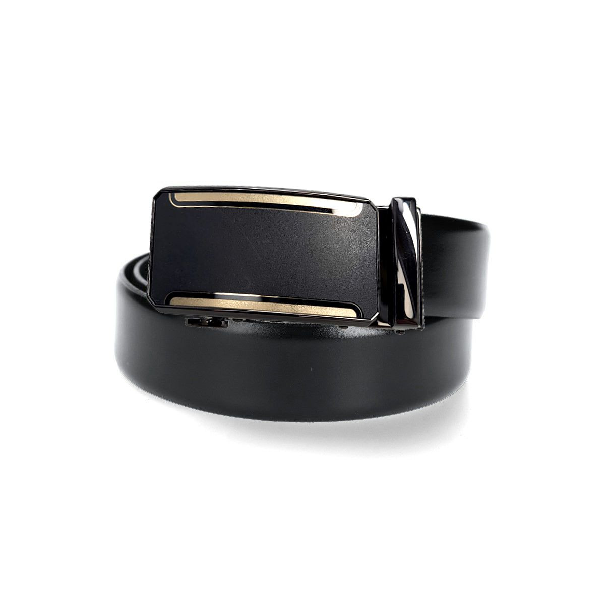 Kožený opasok čierny s automatickou sponou matný so zlatými pruhmi VINCITORE