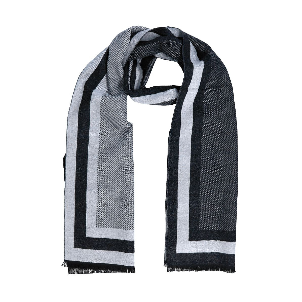 Exkluzívny pánsky šál čierno-sivý Vincitore s čiernymi strapcami
