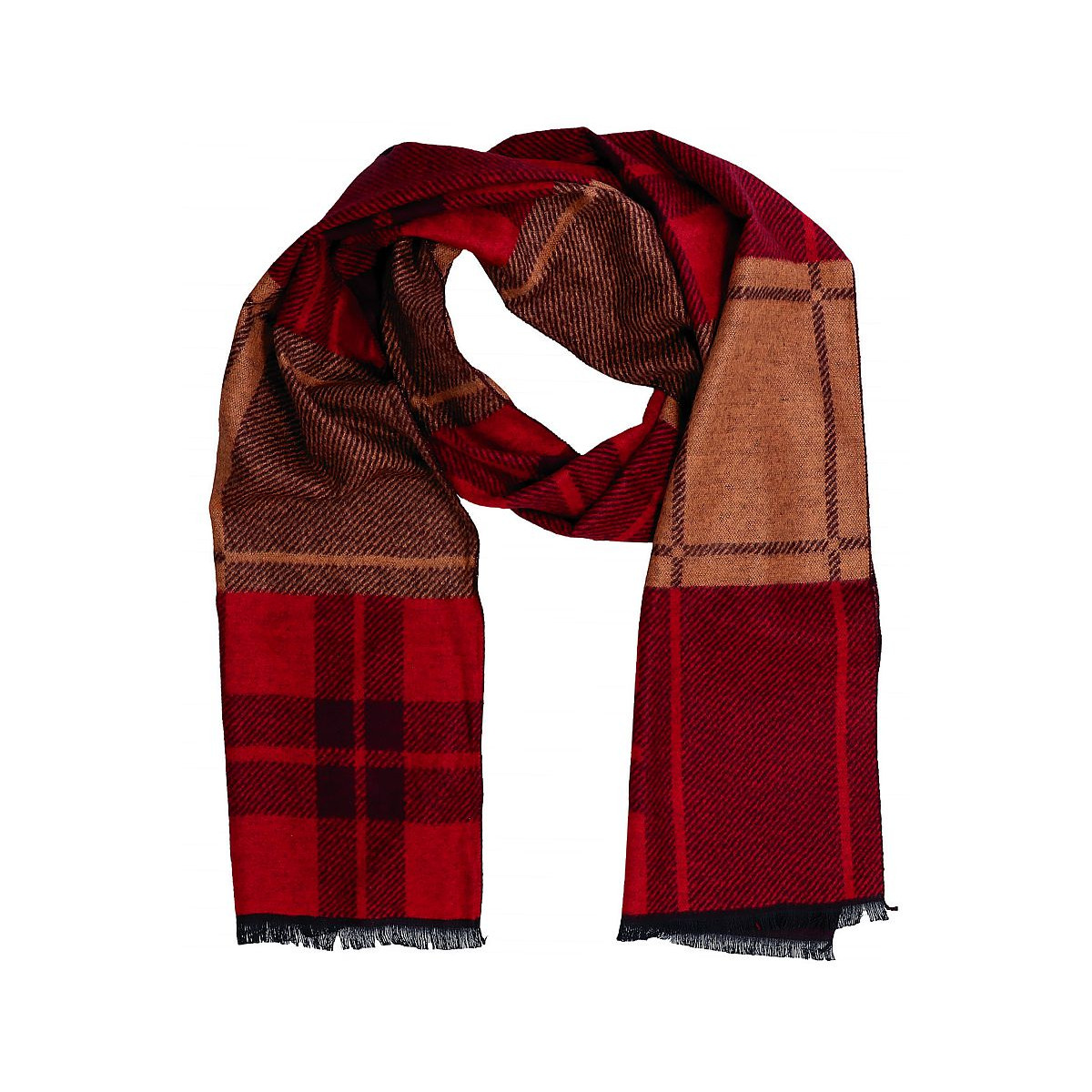 Exkluzívny pánsky šál červeno-hnadý Vincitore s čiernymi strapcami