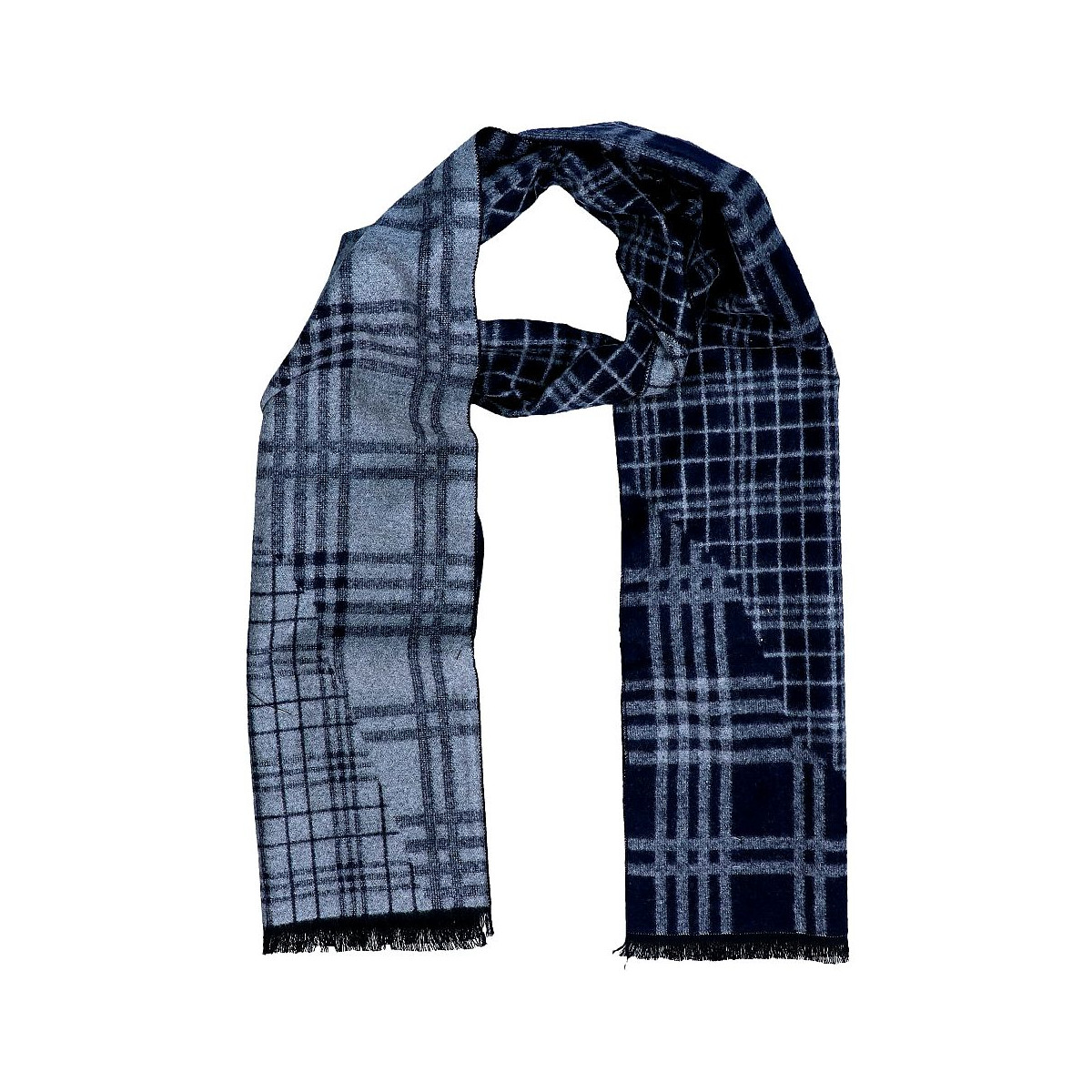 Pánsky šál károvaný modro-sivý s čiernymi strapcami