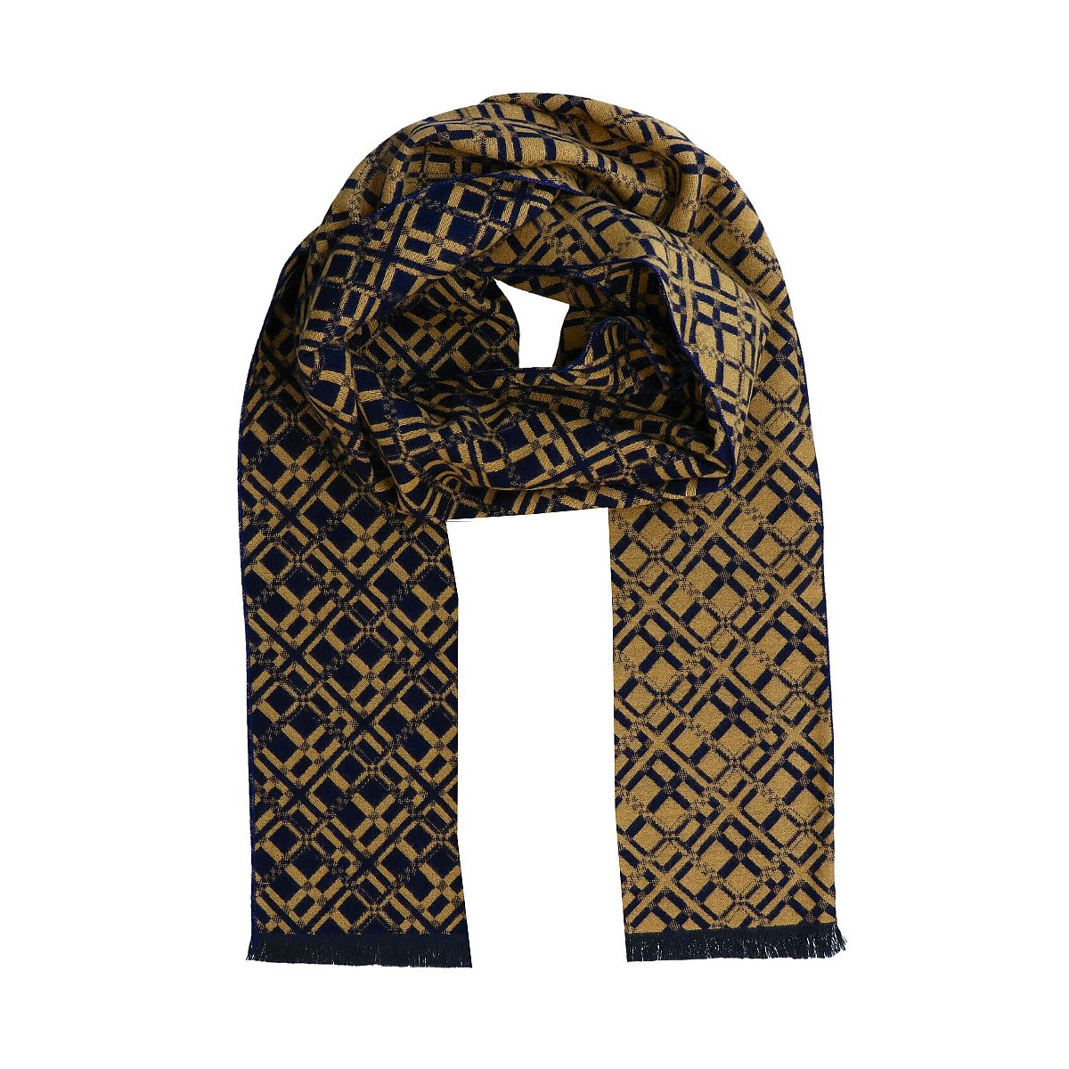 Pánsky šál vzorovaný modrá-mustard s čiernymi strapcami