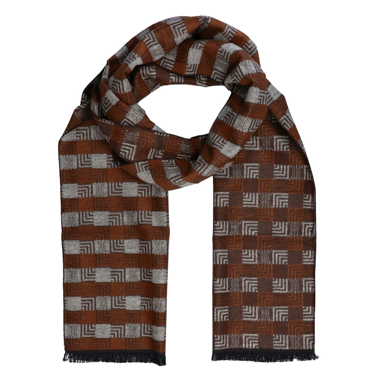Pánsky šál hnedý vzorovaný s čiernymi strapcami