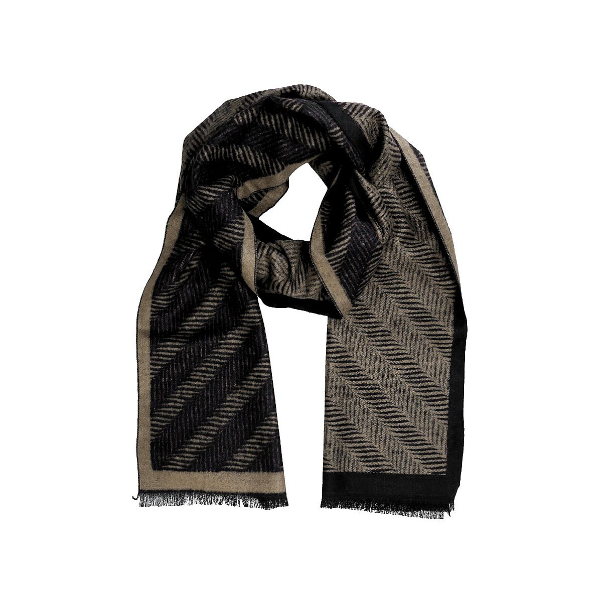Pánsky šál vzorovaný béžovo-grafitový s čiernymi strapcami