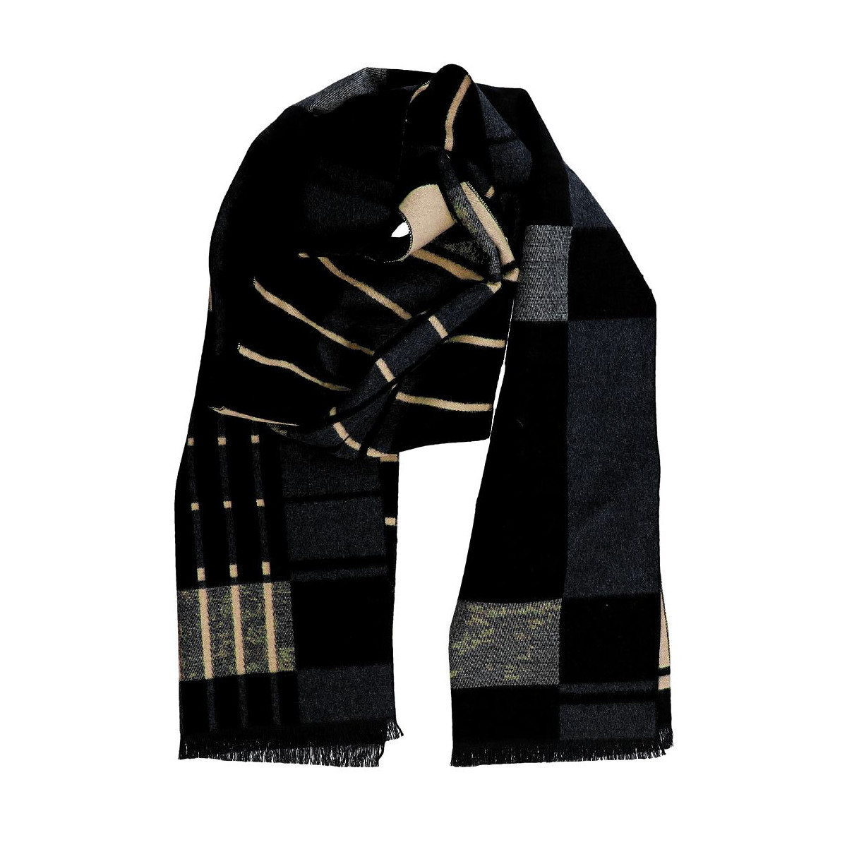 Pánsky šál grafit-béžová vzor s čiernymi strapcami