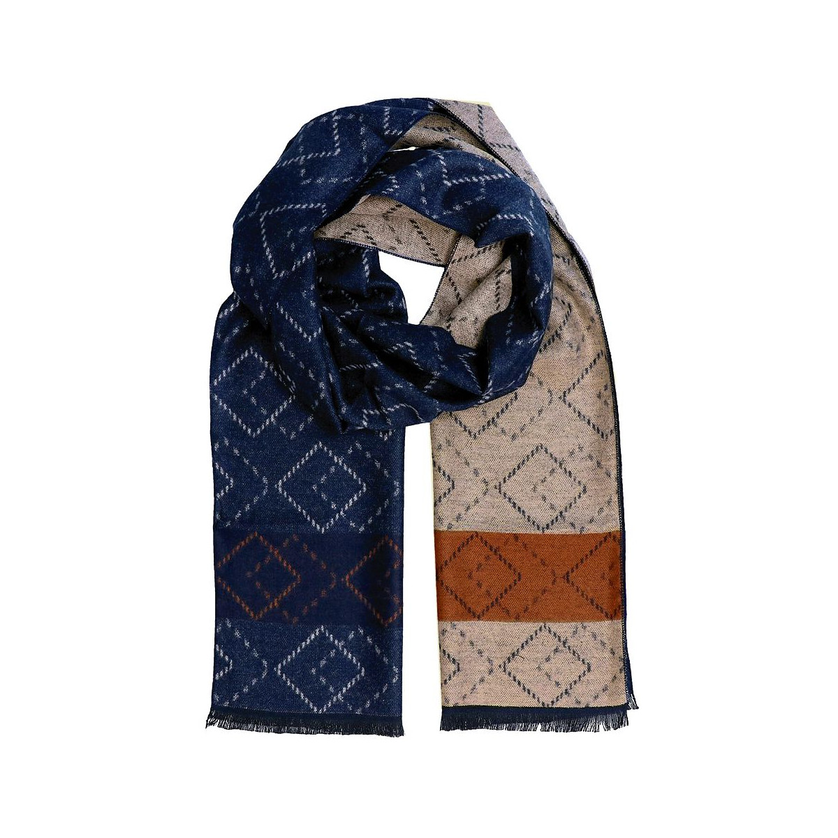 Pánsky šál tmavomodrá-béžová vzor s čiernymi strapcami
