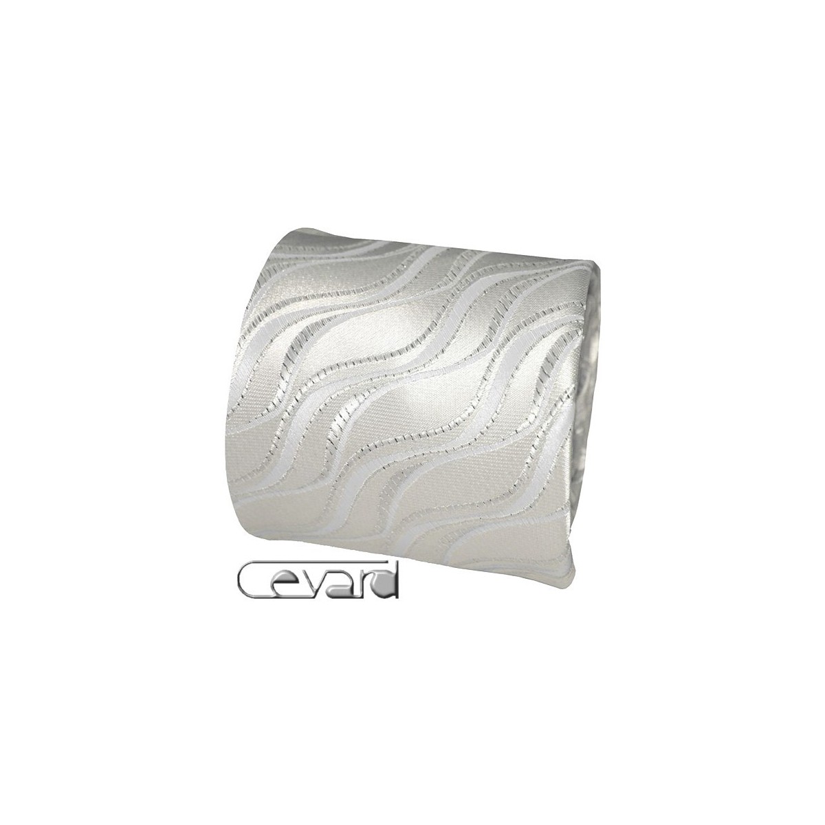 Exkluzívna svadobná kravata s vreckovkou  farby ivory s bielymi vlnkami pretkávanými striebrom