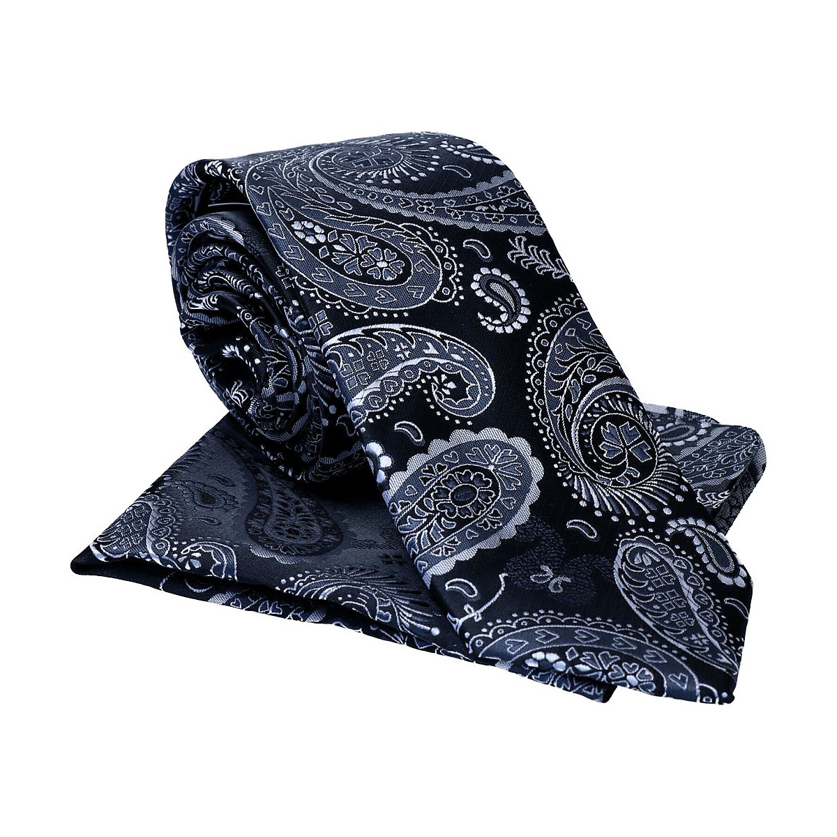 Kravata s vreckovkou čierna s grafitovo-bielym vzorom paisley