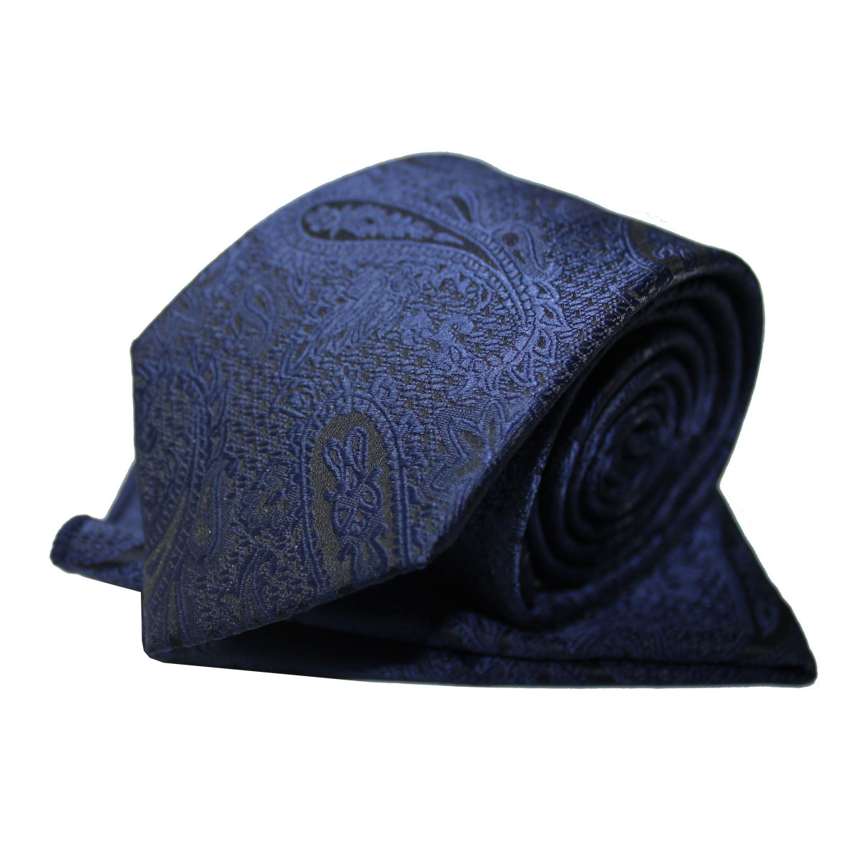 Tmavomodrá kravata s vreckovkou paisley na čiernom podklade