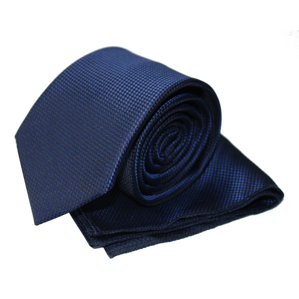 Tmavomodrá kravata s vreckovkou štruktúrovaná