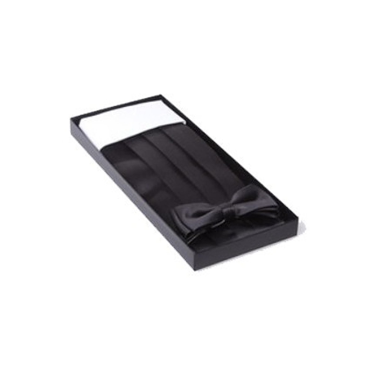 Exkluzívny smokingový pás čierny s dvojvrstvovým motýlikom a bielou vreckovkou