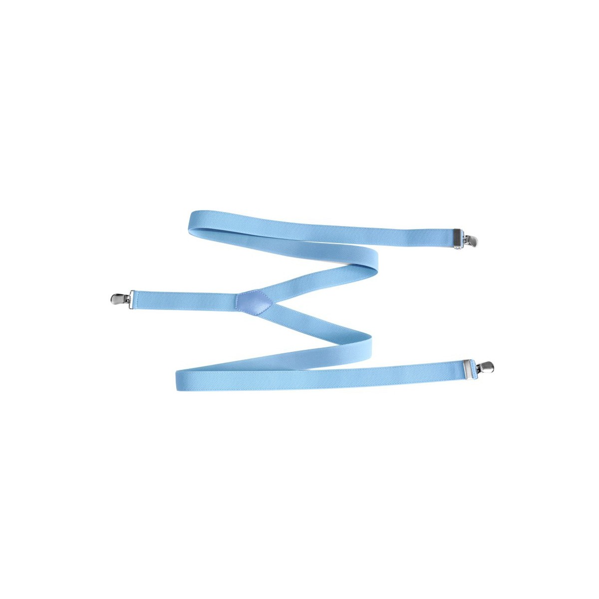 Svetlomodré traky vzadu spojené v tvare Y koženým pútkom s kovovými sponami