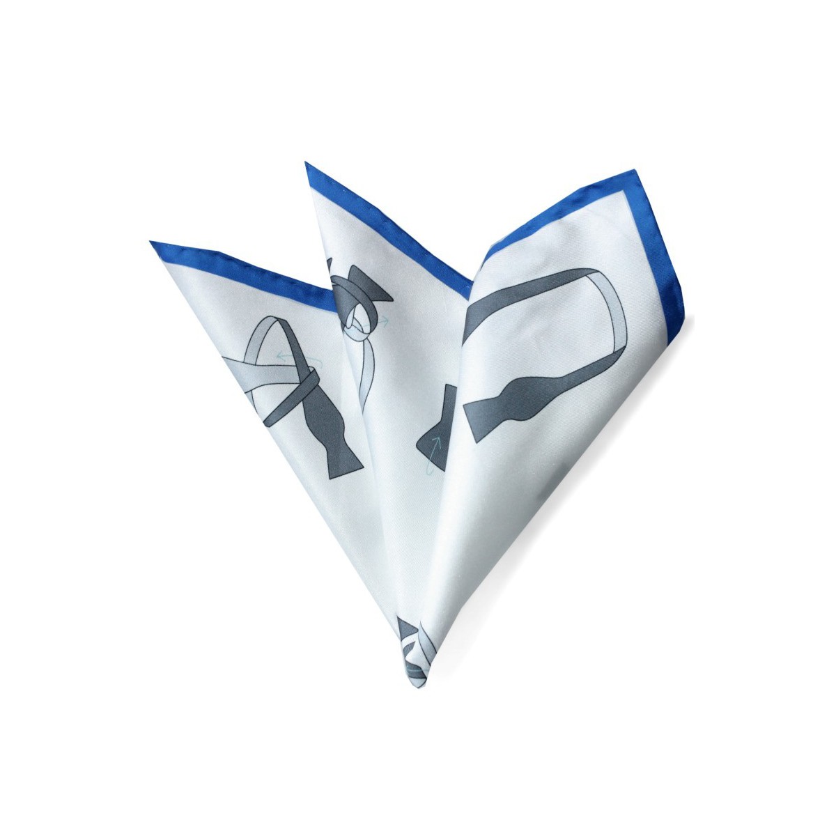 Luxusná vreckovka do saka Pako Lorente s extravagantným motívom viazanie motýlika s modrým lemom 0,5 cm