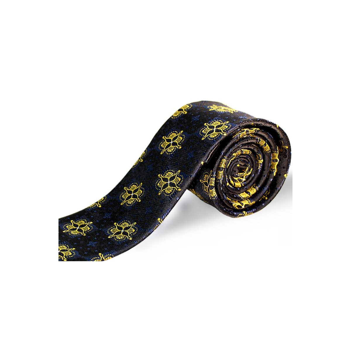 Exkluzívna kravata sýtožltá s drobným modrým vzorom