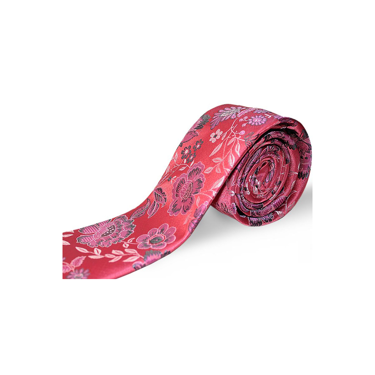 Exkluzívna kravata korálová s kvetovým vzorom na podklade matný lesk